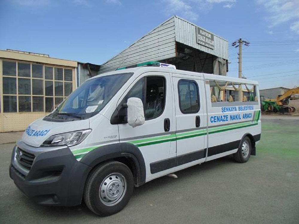 Erzurum ili şenkaya belediyesine ,2014 model fiat ducato çift kabin ,4 cenaze taşımalı ,soğutuculu,siren sistem tepe lamba ve anons cihazlı merasim tip cenaze nakil aracı kısa sürede kayseri cenaze araçları tarafından yayapılarak teslim edilmiştir.bölge halkına hayırlı olsun.